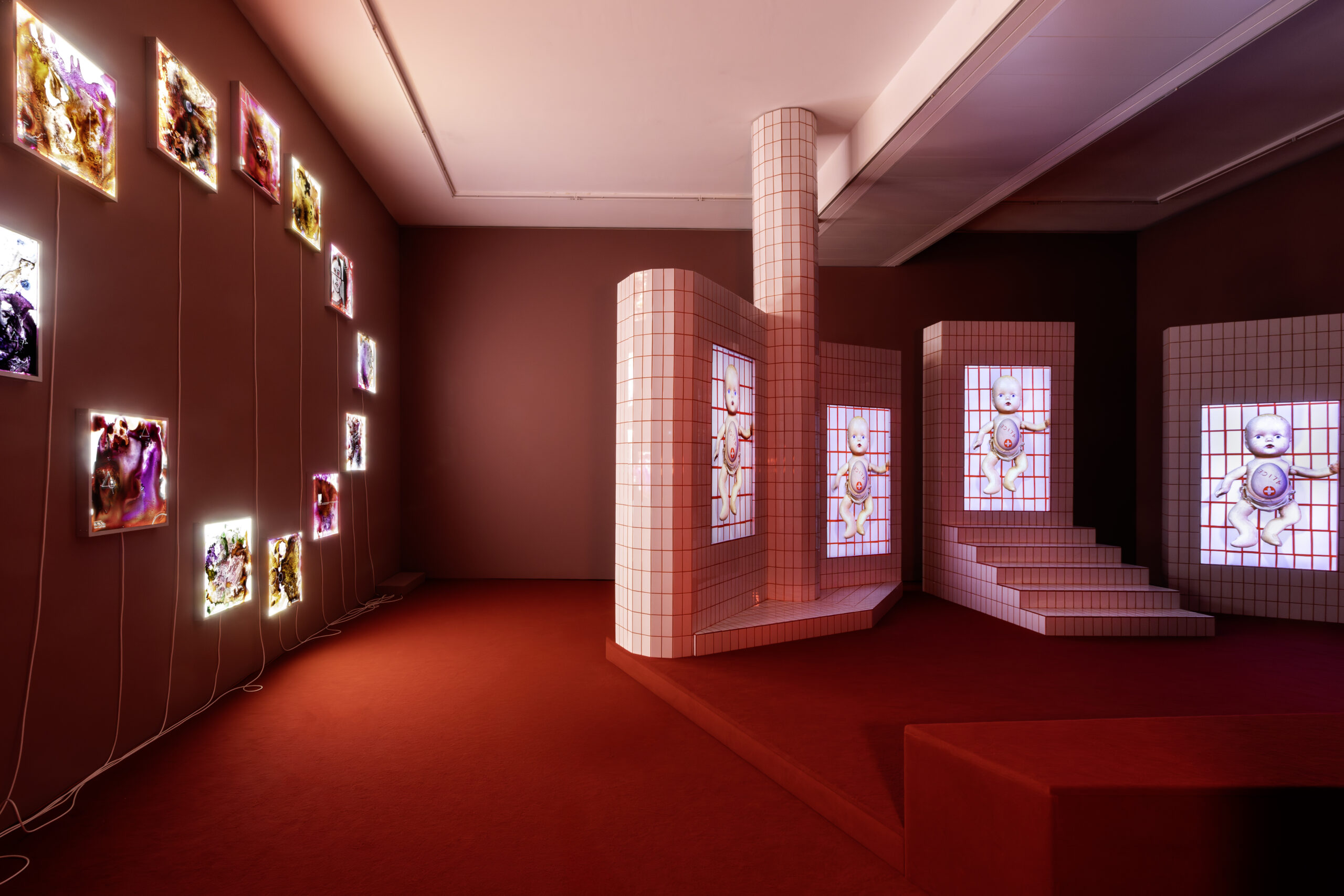 In the exhibition The Red Queen Effect, kennedy+swan look at the complex interrelations between data-driven diagnostics, technology-based prevention, and structural inequalities – and at the growing individual and social pressure to keep up with the accelerated pace of scientific-technological systems.